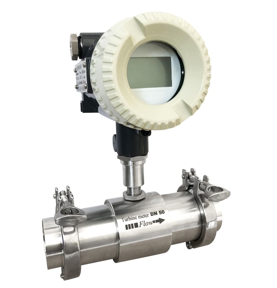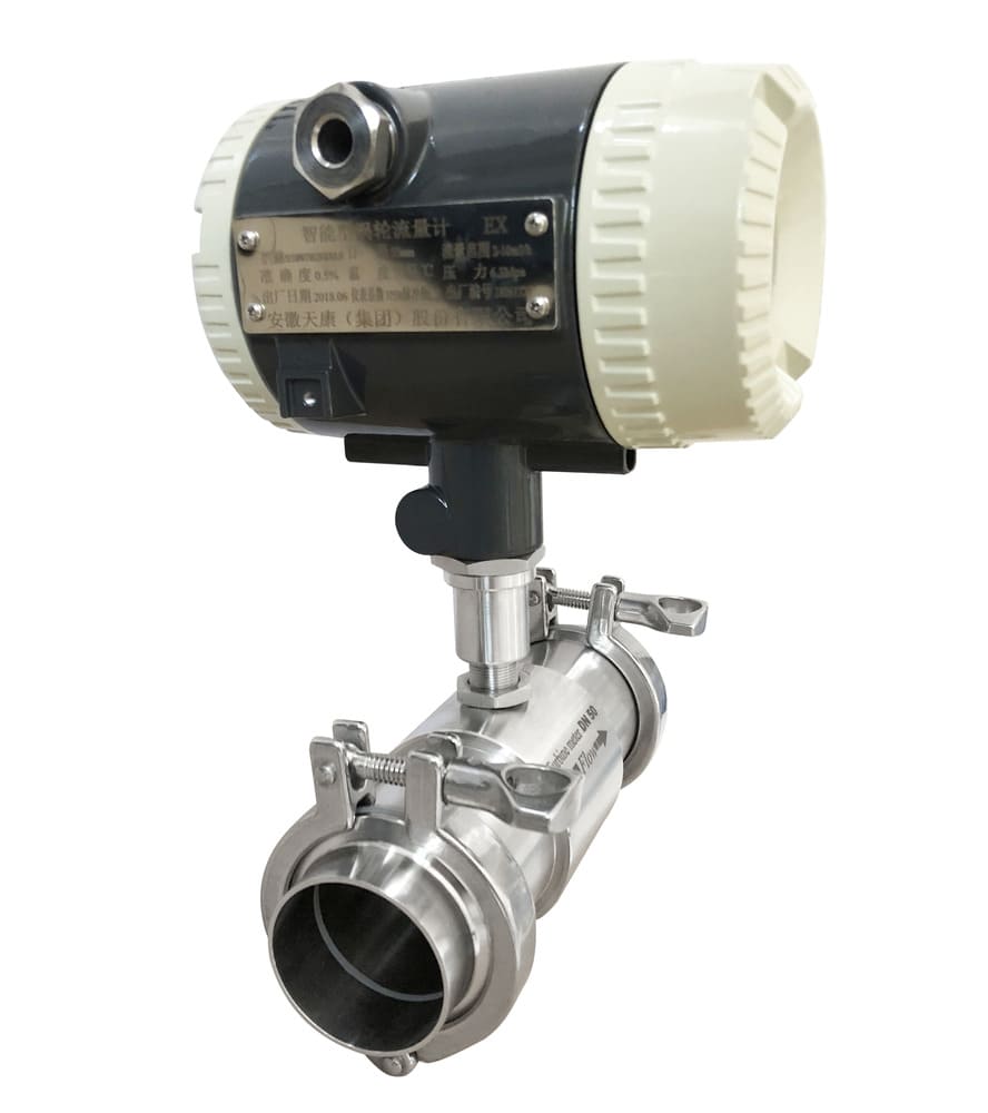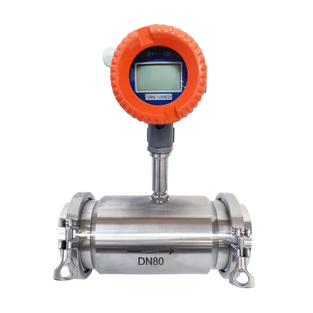 This clamp-connected turbine flowmeter is a new-generation liquid turbine meter designed for closed pipelines that carry clean, low-viscosity liquids. It uses a precision turbine sensor and a built-in amplifier to convert flow into a pulse (and/or 4–20 mA) signal in real time. The meter is small, lightweight, and easy to install and maintain.